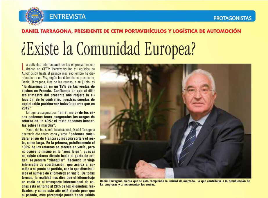 Barcelona, 10 de diciembre del 2013.- Daniel Tarragona, Consejero Delegado del Grupo SETRAM y Presidente de CETM Portavehículos y Logística de Automoción, ha sido entrevistado por la revista Transporte Profesional. A continuación, destacamos las reflexiones mas destacadas y la publicación completa de dicha entrevista.